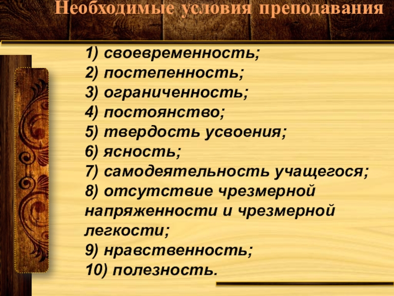 Необходимые условия преподавания