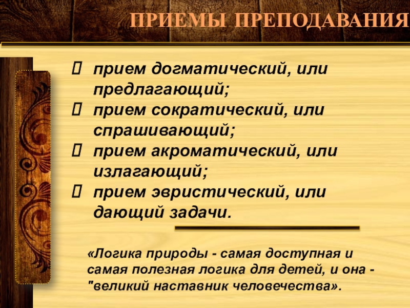 «Логика природы - самая доступная и самая полезная логика для детей, и она - "великий наставник человечества».