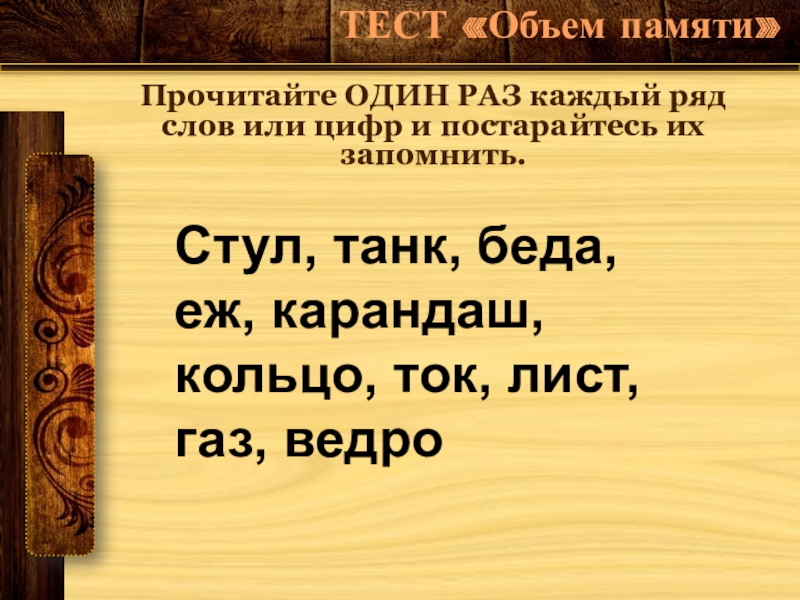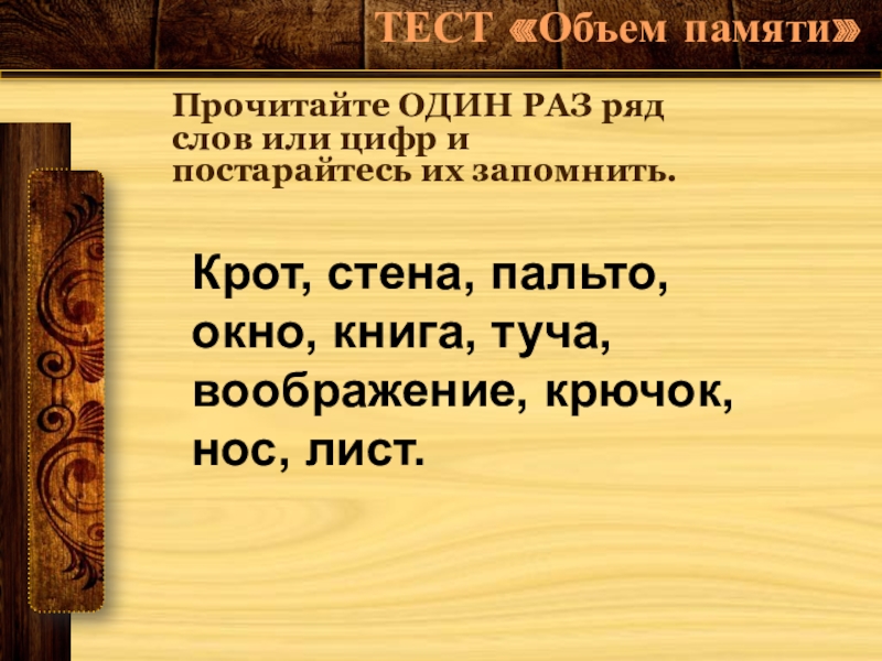 ряд слов или цифр и постарайтесь их запомнить.