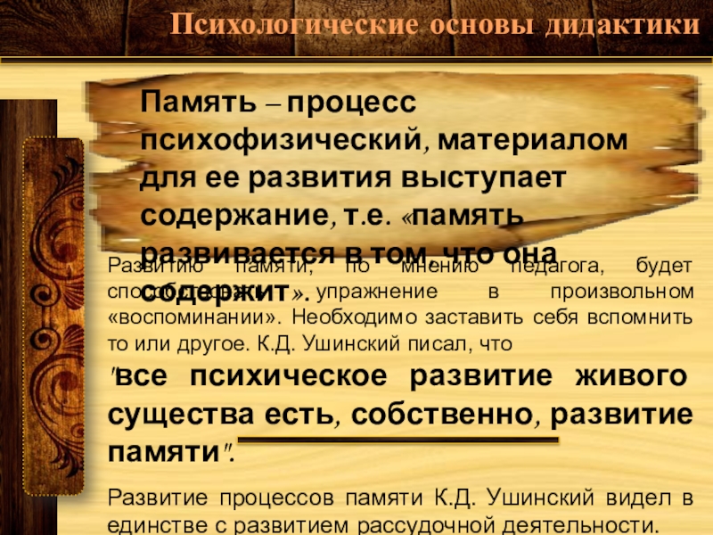 Говоря о памяти и заучивании, Ушинский указывал, что