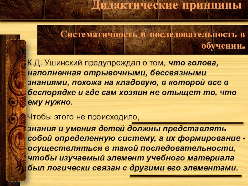 Систематичность и последовательность в обучении.