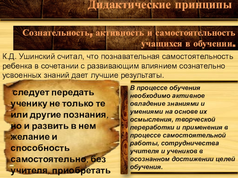 Дидактические взгляды Ушинского отличаются большой глубиной.