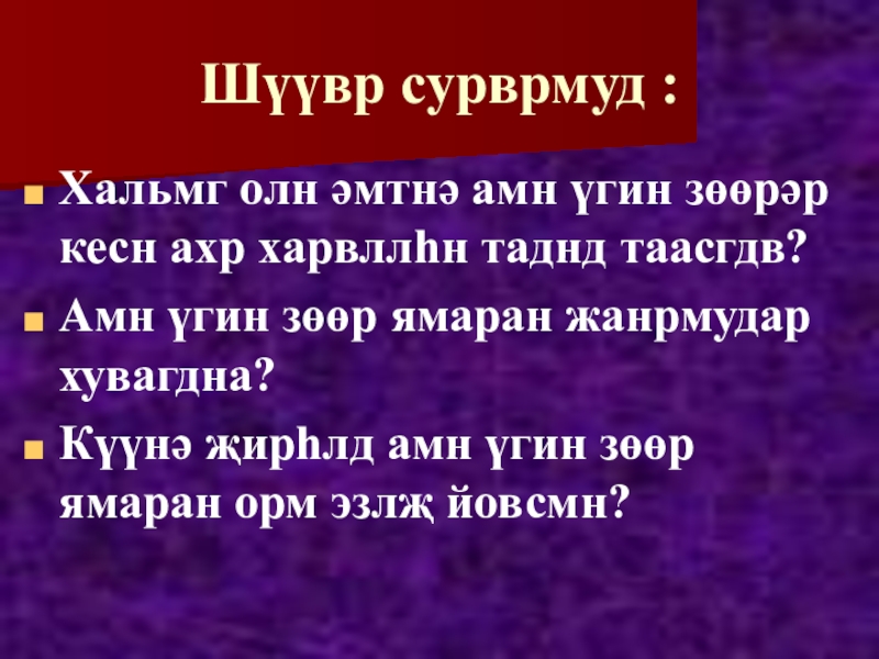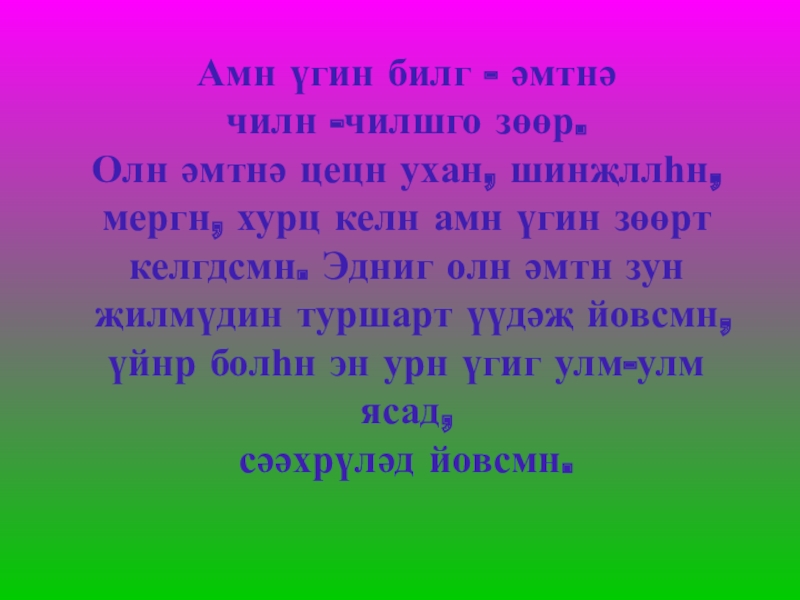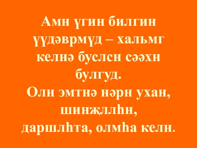 Слайд 17Амн үгин билгин үүдəврмүд – хальмг келнə буслсн сəəхн булгуд.