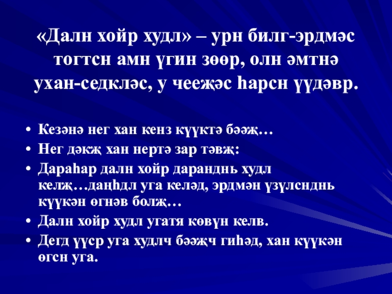 Слайд 11«Далн хойр худл» – урн билг-эрдмəс тогтсн амн үгин зөөр, олн