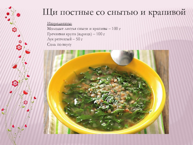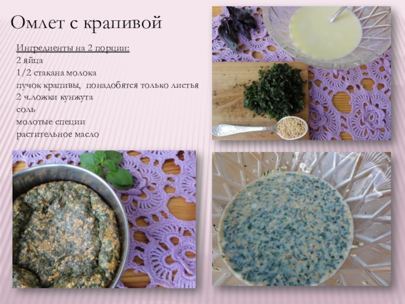 Тщательно вымыть зелень яснотки белой, крапивы и листья лопуха. Лук, чеснок, корень имбиря очистить. Вымытые листья лопуха замочить в соленой воде на несколько часов. Шиитаке, лук и чеснок мелко нарезать кубиками.