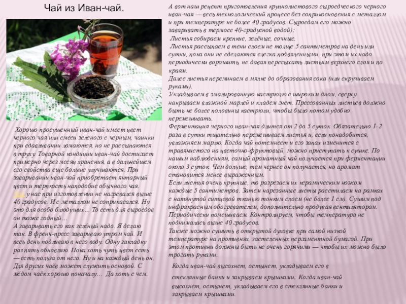 Чай у нас при изготовлении не нагревался выше 40 градусов. И с металлом не соприкасался. Ну это для особо блюдущих… То есть для сыроедов он тоже годный…