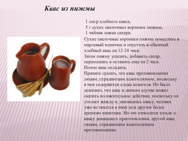 Сухие цветочные корзинки пижмы поместить в марлевый мешочек и опустить в обычный хлебный квас на 12-24 часа.
