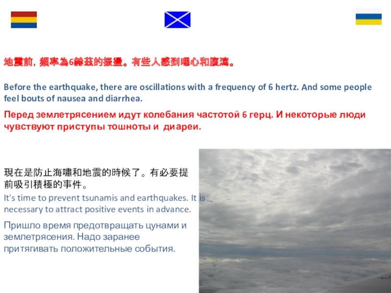 地震前,頻率為6赫茲的振盪。 有些人感到噁心和腹瀉。