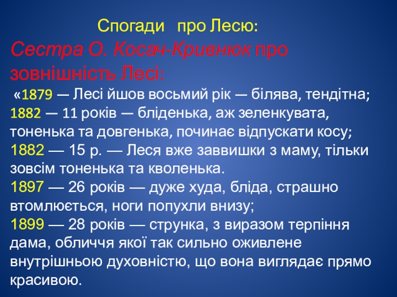 Сестра О. Косач-Кривнюк про зовнішність Лесі: