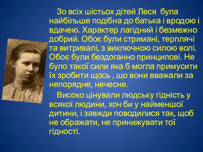 Слайд 8 Зо всіх шістьох дітей Леся була найбільше