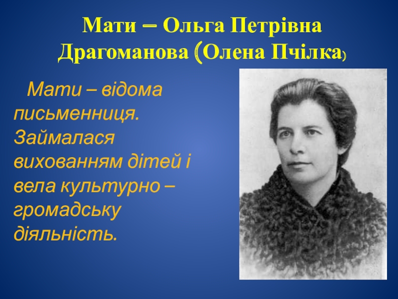 Слайд 6Мати – Ольга Петрівна Драгоманова (Олена Пчілка)