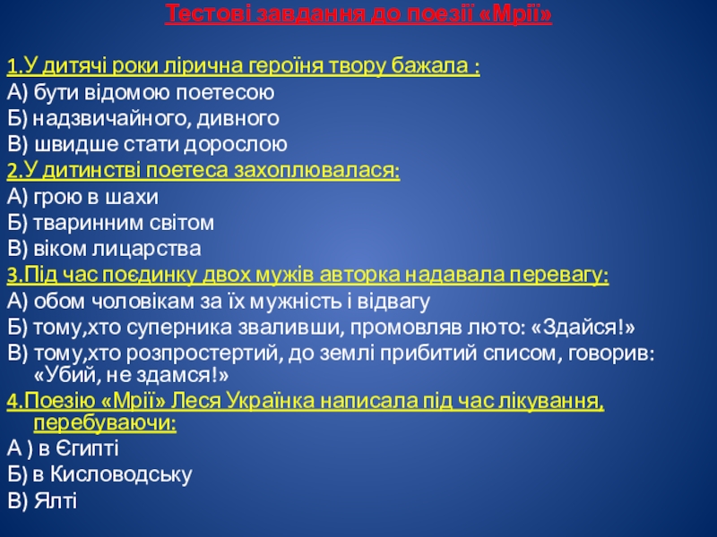 (дитинство, роль родини у її вихованні); проаналізувати твір “Мрії”,