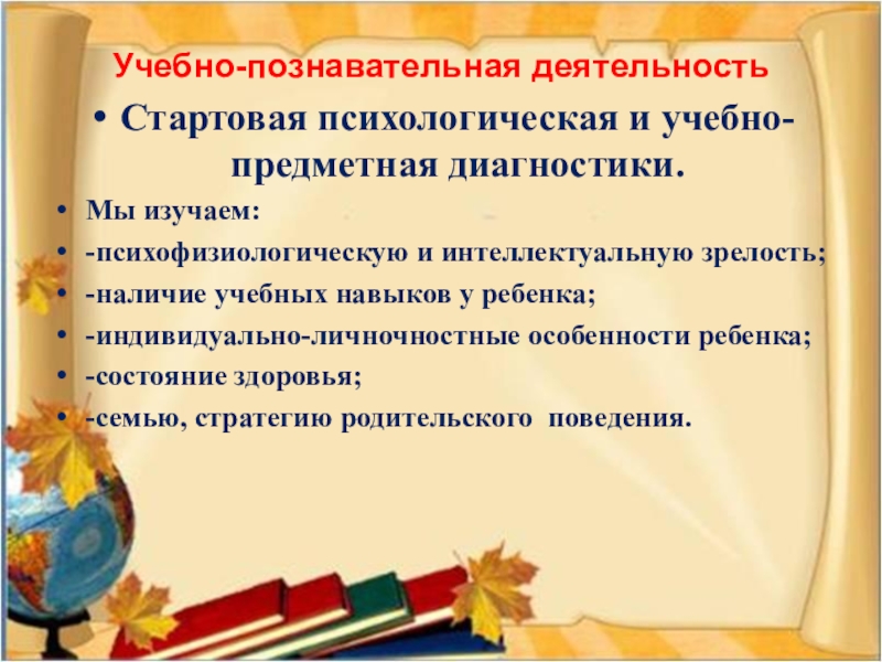 и умений для учебы в школе.