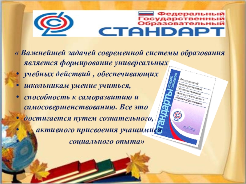 « Важнейшей задачей современной системы образования является формирование универсальных