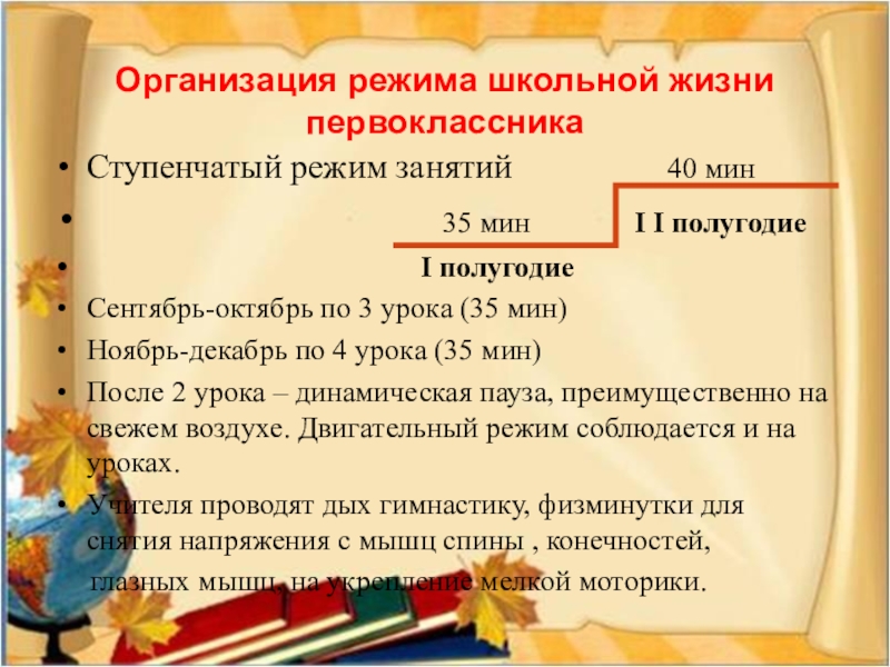 Организация режима школьной жизни первоклассника
