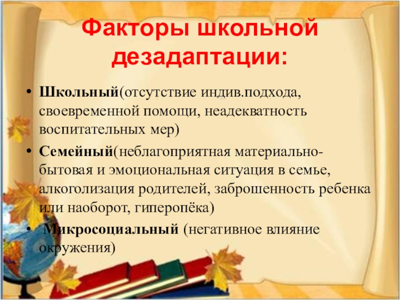 Слайд 13Факторы школьной дезадаптации:
