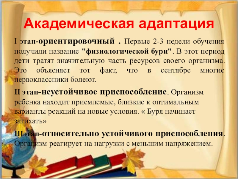 бури". В этот период дети тратят значительную часть ресурсов своего организма. Это объясняет тот факт, что в сентябре многие первоклассники болеют.