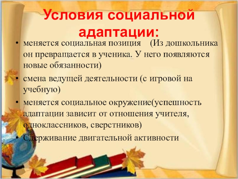 Слайд 8Условия социальной адаптации: