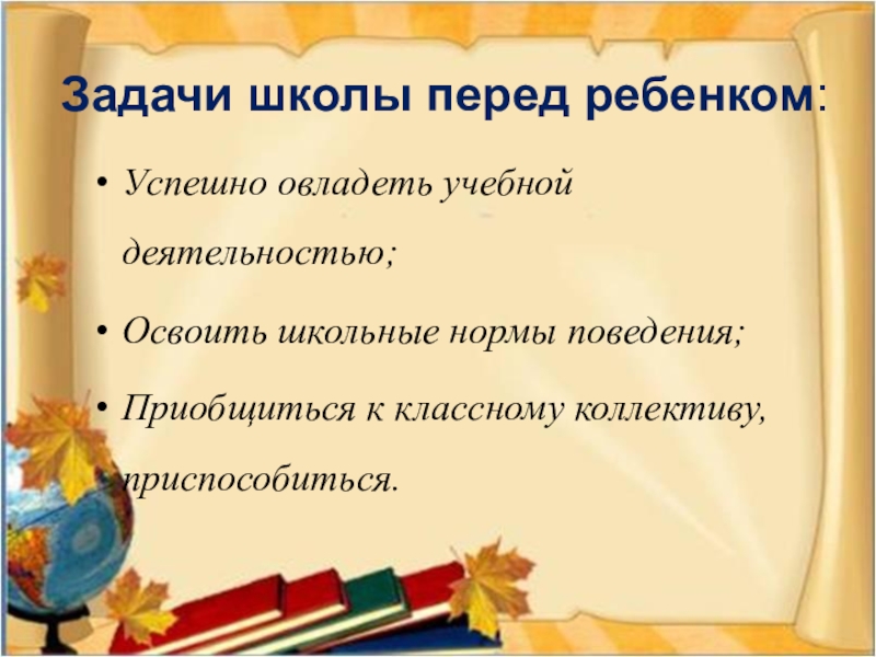 Освоить школьные нормы поведения;