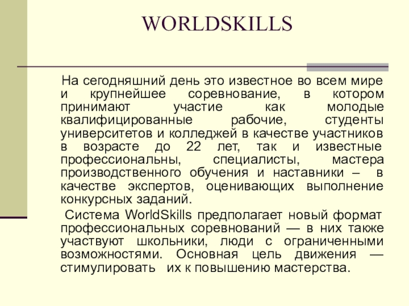 WorldSkills – это международное некоммерческое движение, целью которого является повышение