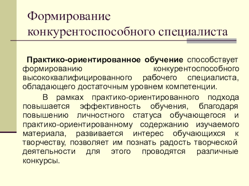 Практико-ориентированное обучение способствует формированию конкурентоспособного высококвалифицированного рабочего