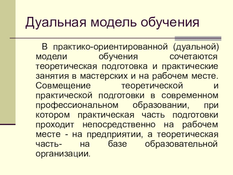 В практико-ориентированной (дуальной) модели обучения сочетаются теоретическая