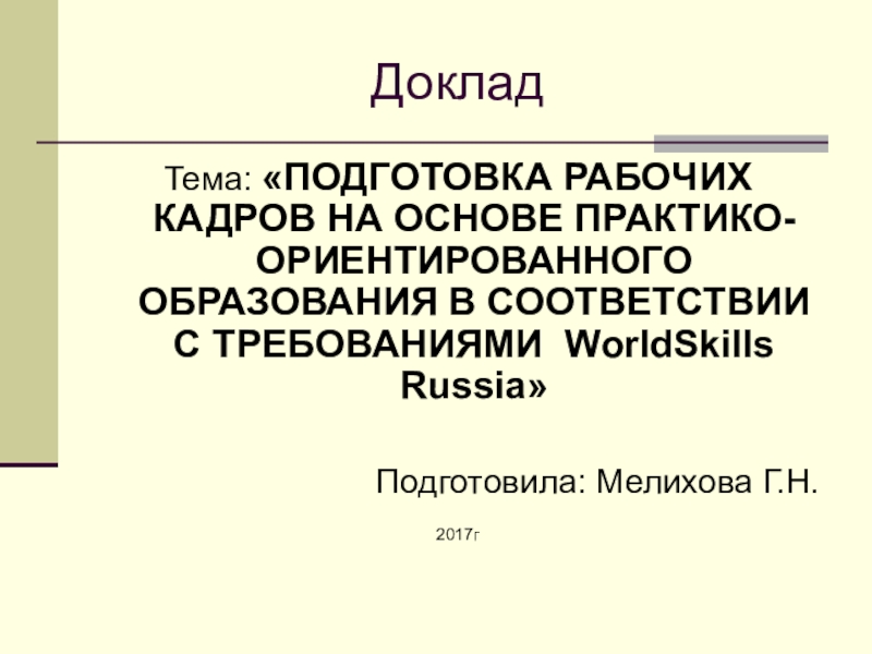 Тема: «ПОДГОТОВКА РАБОЧИХ КАДРОВ НА ОСНОВЕ ПРАКТИКО-ОРИЕНТИРОВАННОГО ОБРАЗОВАНИЯ В СООТВЕТСТВИИ С