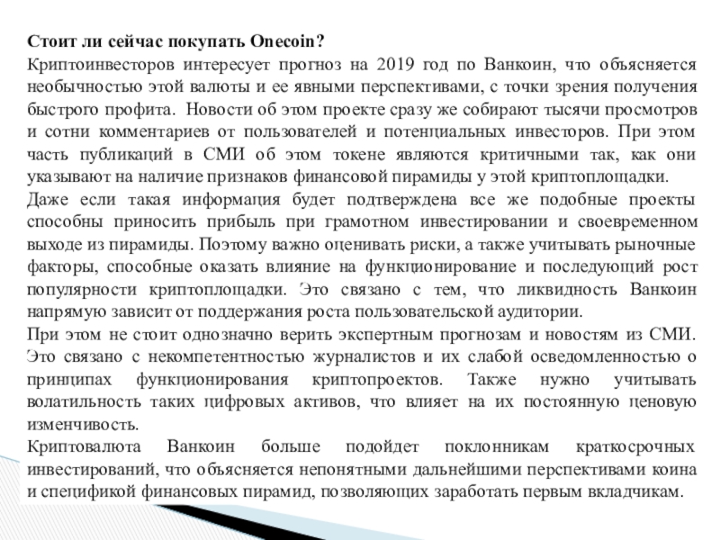 Слайд 14Стоит ли сейчас покупать Onecoin?