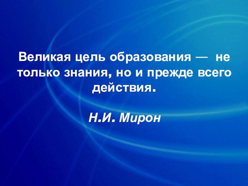 Великая цель образования —  не только знания, но и прежде всего действия.  Н.И. Мирон