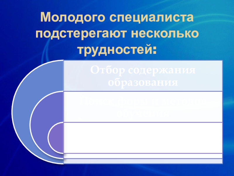 Слайд 3Молодого специалиста подстерегают несколько трудностей: