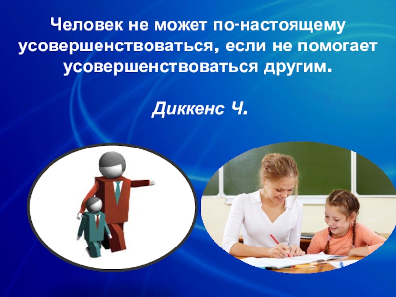 Человек не может по-настоящему усовершенствоваться, если не помогает усовершенствоваться другим.    Диккенс Ч.