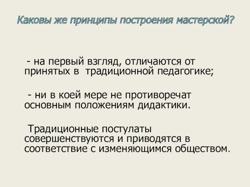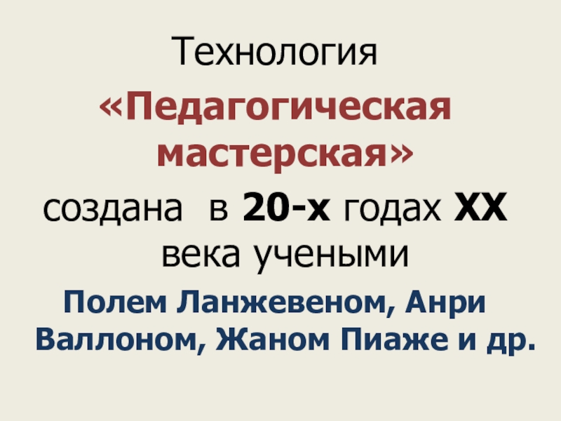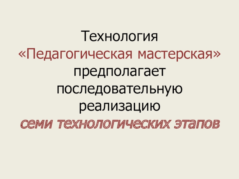 «Педагогическая мастерская» предполагает последовательную реализацию