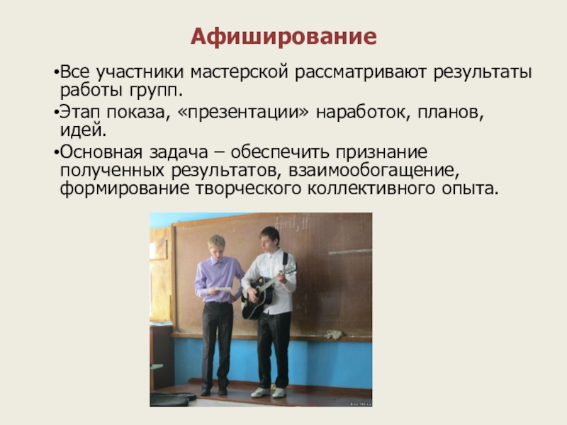 Основная задача – обеспечить признание полученных результатов, взаимообогащение, формирование творческого коллективного опыта.