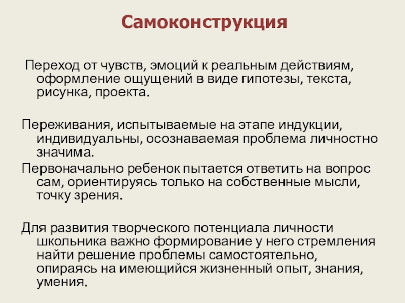 Переживания, испытываемые на этапе индукции, индивидуальны, осознаваемая проблема личностно значима.