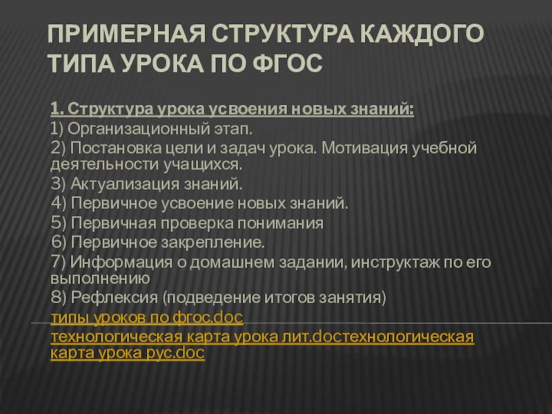 Урок усвоения новых знаний