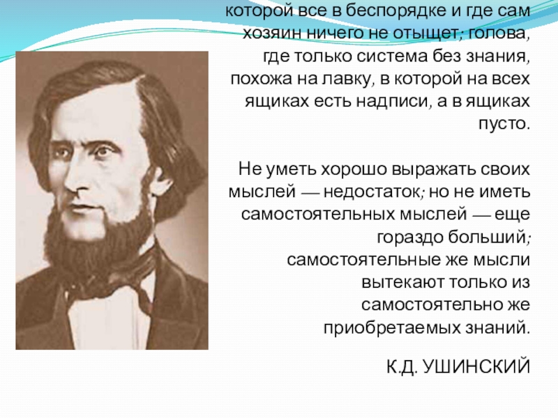 Не уметь хорошо выражать своих мыслей — недостаток; но не иметь самостоятельных мыслей — еще гораздо больший; самостоятельные же мысли вытекают только из самостоятельно же приобретаемых знаний.