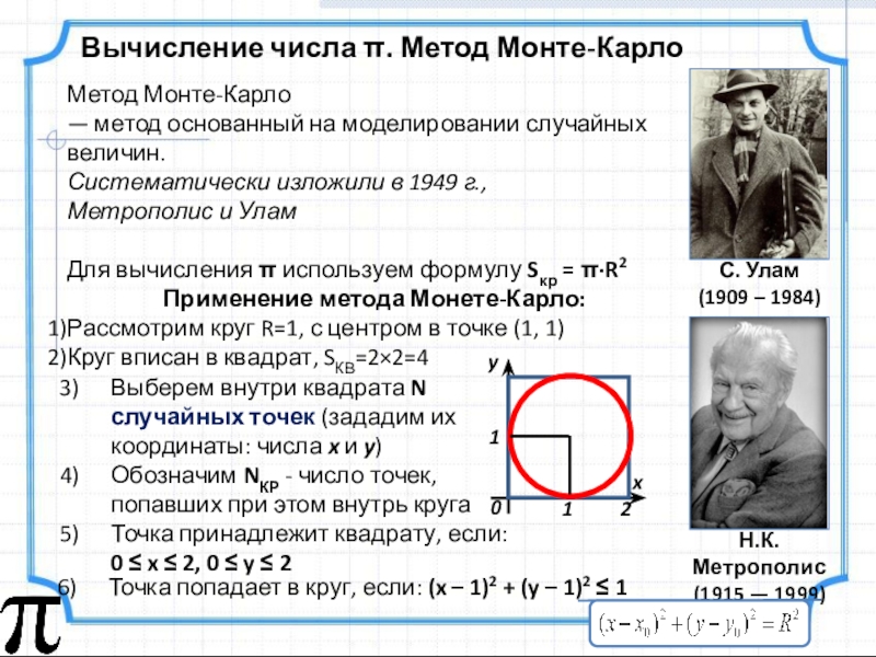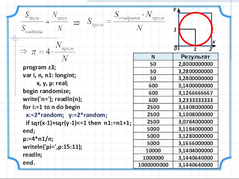 Обозначим NКР - число точек, попавших при этом внутрь круга