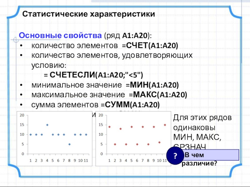 Для этих рядов одинаковы МИН, МАКС, СРЗНАЧ