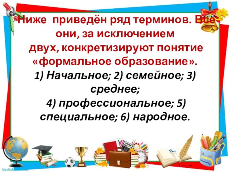 Слайд 10 Ниже приведён ряд терминов. Все они, за исключением