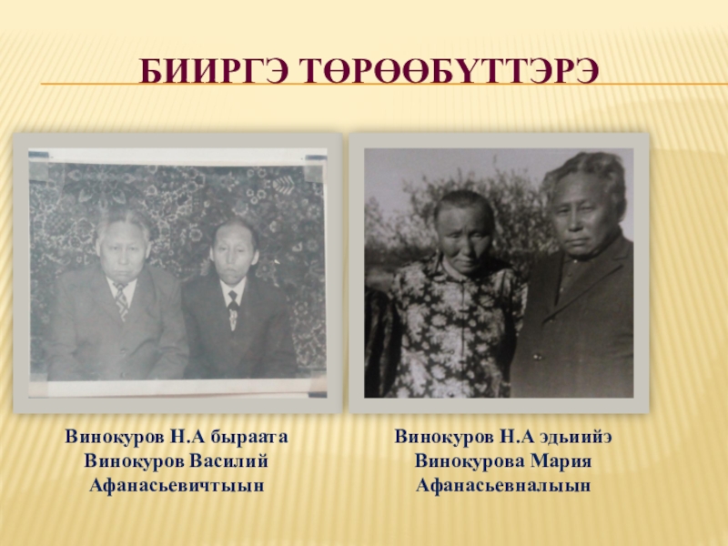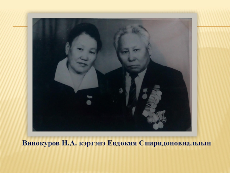Слайд 9Винокуров Н.А. кэргэнэ Евдокия Спиридоновналыын