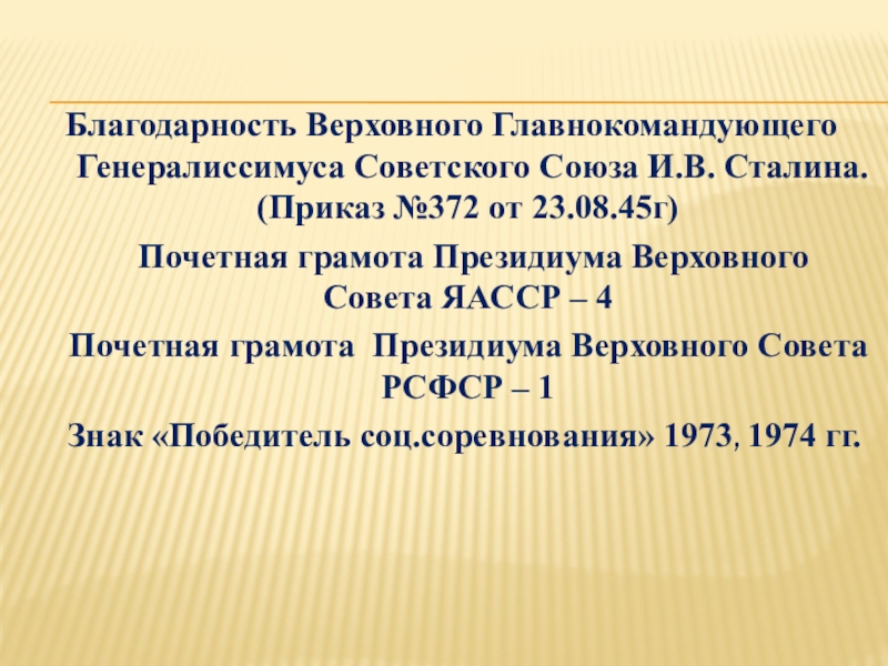 Почетная грамота Президиума Верховного Совета ЯАССР – 4