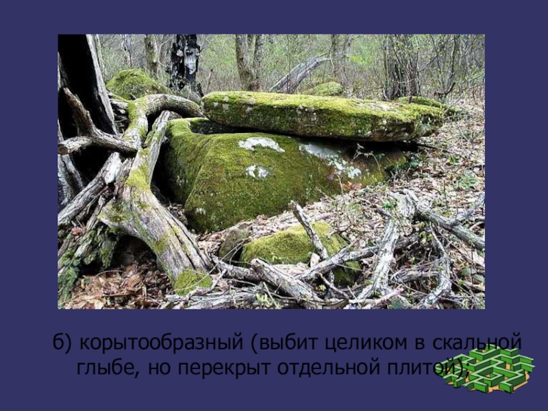 б) корытообразный (выбит целиком в скальной  глыбе, но перекрыт отдельной плитой);