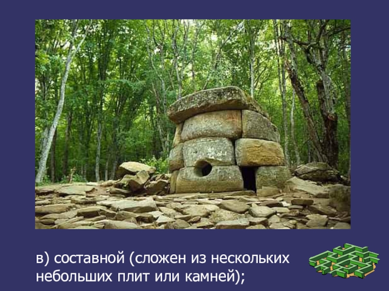 Слайд 9в) составной (сложен из нескольких небольших плит или камней);