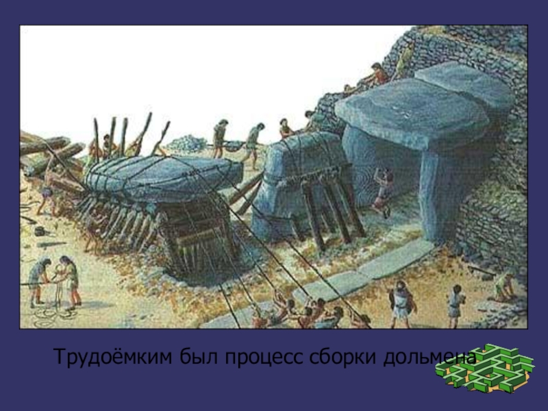 Слайд 5Трудоёмким был процесс сборки дольмена