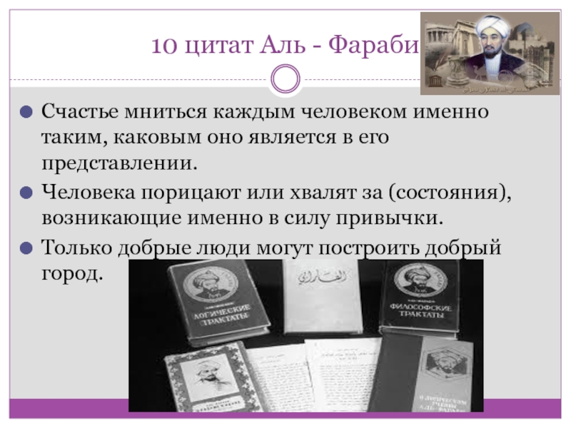Слайд 1010 цитат Аль - Фараби