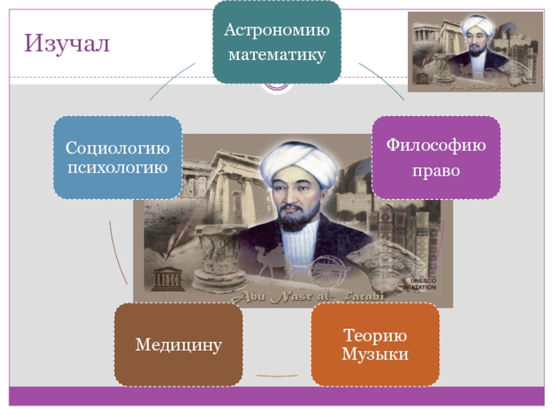 - изучал астрономию, логику, теорию музыки и математики, социологию и этику, медицину и психологию, философию и право;