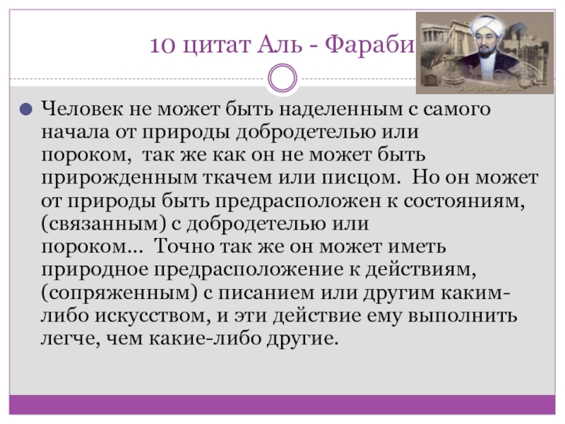 Слайд 510 цитат Аль - Фараби