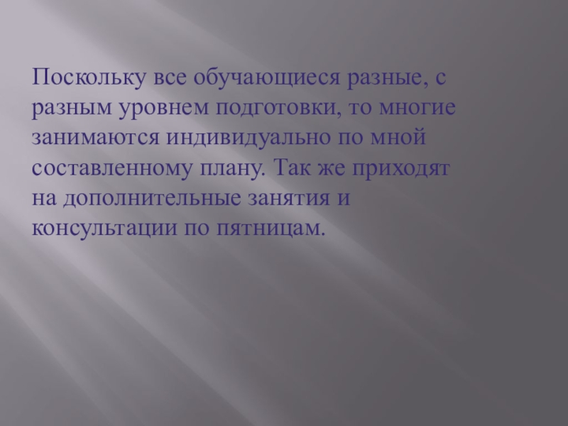 Слайд 16Поскольку все обучающиеся разные, с разным уровнем подготовки, то многие занимаются