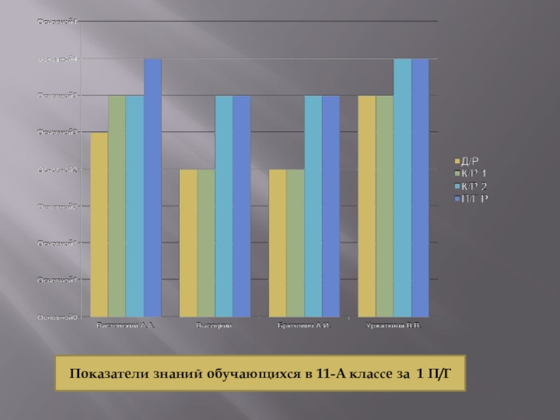 Слайд 21Показатели знаний обучающихся в 11-А классе за 1 П/Г