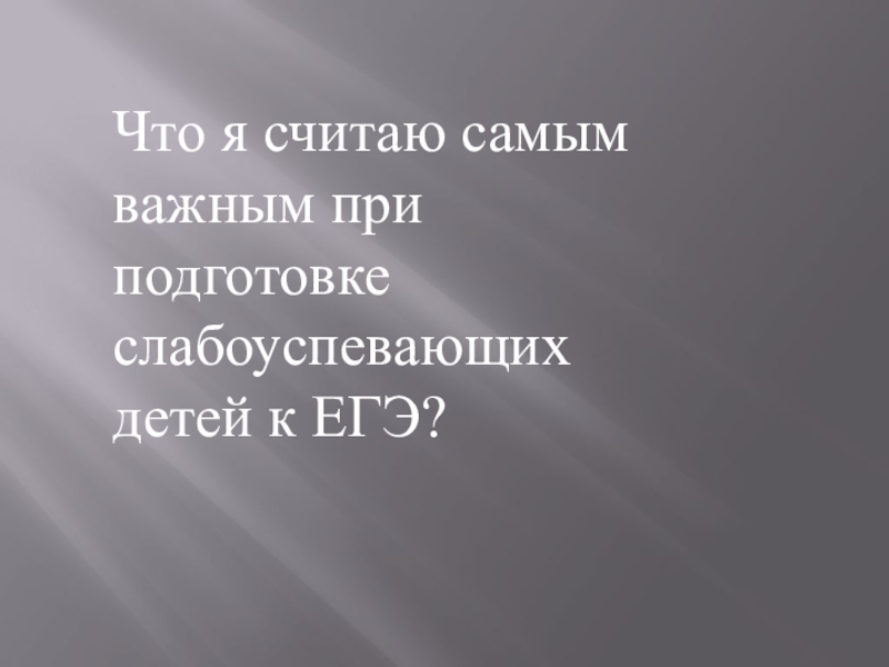 Слайд 6Что я считаю самым важным при подготовке слабоуспевающих детей к ЕГЭ?